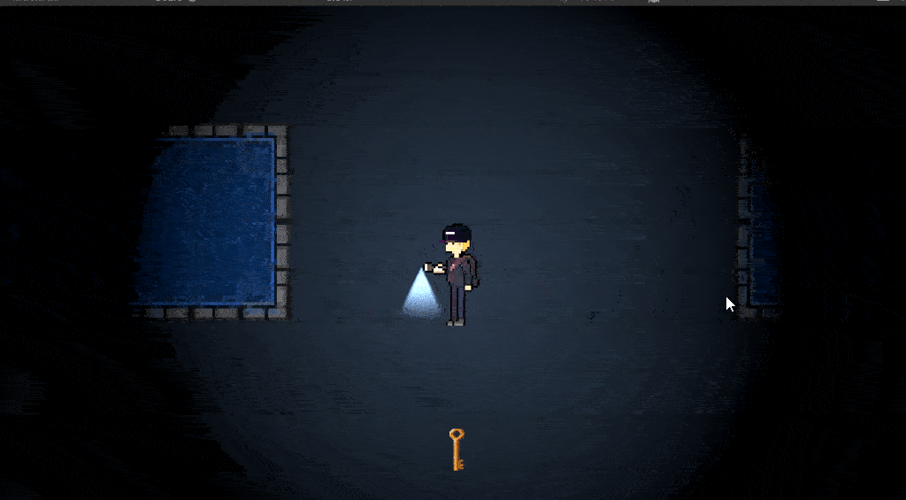 The last thing implemented for this checkpoint was the change of scene lighting. I decided to make the entire scene dark, with only a certain radius of light that stemmed from the center of the player model. This change would better help the game fit the eerie and creepy vibe I was going for as well as add an element of challenge to the gameplay where the player must navigate the map with only a certain amount of light, collect the key to escape to the next level. As suggested by a tester last week, I have also zoomed the camera in, to focus and follow the player as they move around the map to fit the theme of my game. The scene lighting and bit of gameplay represented in a GIF below:
